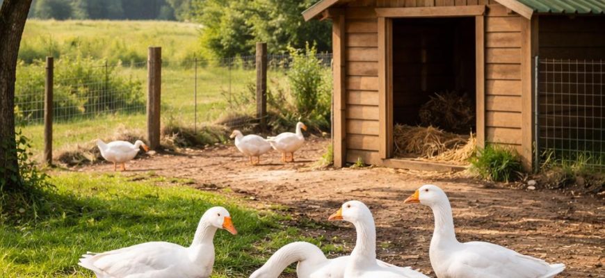 Когато отглеждате гъски в частен парцел, основният практически въпрос е как да организирате място за живеене, така че птиците да могат да растат нормално.