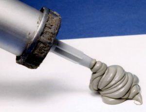 За нанасяне на лепилото и уплътнителя се използва специална спринцовка. Зоните, които ще се съединяват, се почистват старателно от всякакви отпадъци предварително, за да се осигури максимална ефективност.