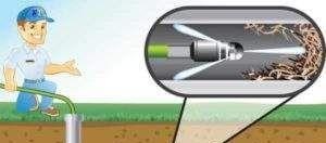 - Дюзата насочва струя вода директно към запушването, разрушавайки го. След това отделените отпадъци се отстраняват през канала.