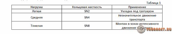 При инсталиране на комуникации извън сгради се взема предвид зависимостта на твърдостта на конструкцията от очакваното натоварване: