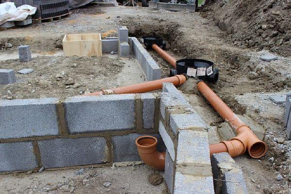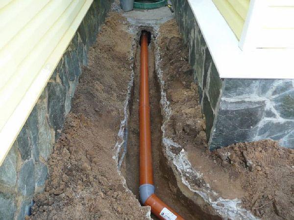 За външната канализационна система се използват тръби с диаметър 100 милиметра, за предпочитане изработени от пластмаса. Тяхното предимство е, че са гъвкави и практически не се влияят от сезонните движения на почвата. Дълбочината на външните канализационни тръби трябва да бъде не по-малка от линията на замръзване. Като се вземе предвид дренажният слой, те трябва да се полагат 30-40 сантиметра по-дълбоко.