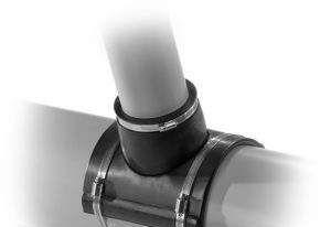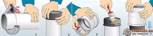 - Връзката с муфа е най-простият и най-разпространен метод. Тесният край се вкарва в муфата, която вече има гумен уплътнителен пръстен. За да се осигури плътно уплътнение, съединението се запечатва със силиконов уплътнител.