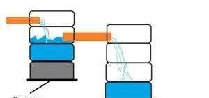 - Свързване на септична яма, изработена от гуми, и резервоар за пречистване на отпадъчни води