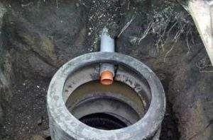 - отпадъците текат през канализационната тръба в кладенеца през канала;