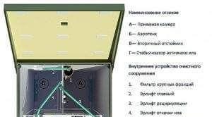 Първо, потоците навлизат в тази камера, където утайката се разделя на частици с различни размери. Отпадъчните води се натрупват в тази камера, където се активират бактерии, разграждащи органичната материя на вода и утайка. Когато нивото на замърсената течност достигне поплавъчния превключвател, се изпраща сигнал за активиране на компресорния механизъм. Компоненти, по-леки от водата, изплуват на повърхността.