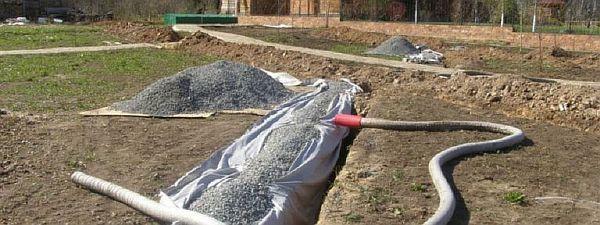 Когато използвате пластмасови тръби, внимателно уплътнете пясъчния слой. Най-добри резултати се постигат чрез обилно поливане на покритието. Това осигурява най-добро уплътняване, след което можете да запълните с почва.