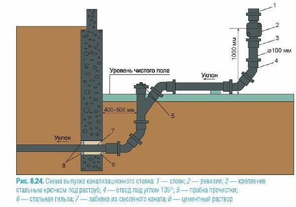 След това, съгласно схемата (вижте по-долу) и стандартите на SNiP се използват за извършване на канализация.