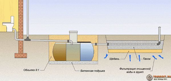 - Трикамерна - над 10 м3/ден; следователно, приложената по-горе диаграма не е задължителна, а служи само за демонстрация на един от възможните варианти за проектиране на септична яма.