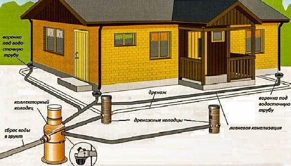 - Канализационна система за дъждовни води, която събира дъждовна вода и стопена вода, отвежда я в специални резервоари за съхранение и след това я изпуска в канализацията или в устройства за използване в сухи периоди.