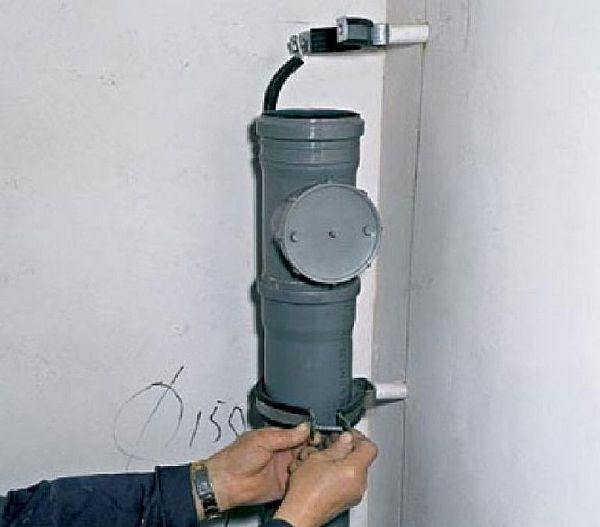 В горната част на щранга в къщата е монтиран друг ревизионен люк, към който е прикрепена основата на отпадъчната тръба. Той излиза през тавана и покривните плочи. Горният край трябва да е поне на половин метър над билото на покрива, за да се осигури надеждно отстраняване на неприятните миризми от канализацията.