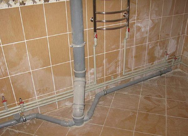 - Отводнителната тръба преминава през отвор в стената в банята, където могат да се свържат следните водопроводни инсталации: мивка, вана, пералня – всяко устройство със собствен сифон.