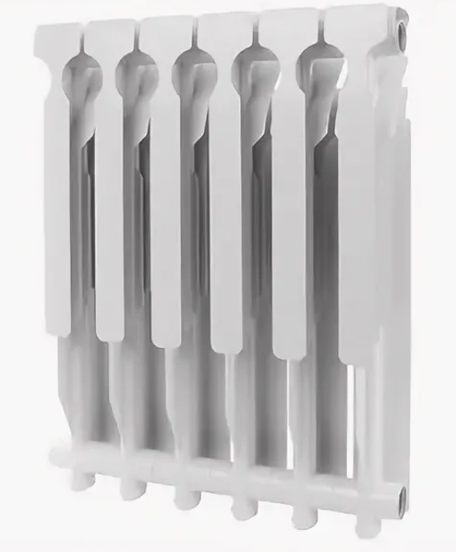 Биметалният дизайн съчетава най-добрите термични свойства на два метала. Стоманата, нагрята от охлаждащата течност, предава топлина на алуминиевите плочи, които отделят топлинна енергия във въздуха на апартамента много по-бързо от стоманената рамка.