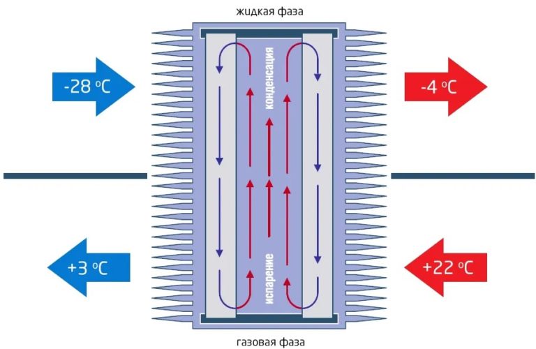 Преносът на топлинна енергия има свои собствени характеристики в студените и топлите сезони. През зимата топъл въздух навлиза в помещението, което увеличава спестяванията от отопление.