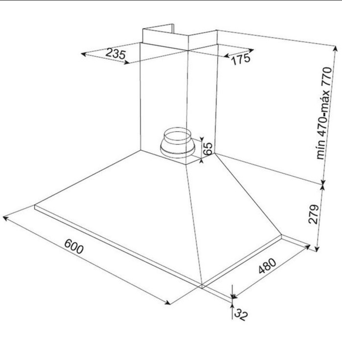 Корпусът е с ширина 600 мм и височина 1 м. За свързване към вентилационни канали е предвидена тръба с диаметър 150 мм.