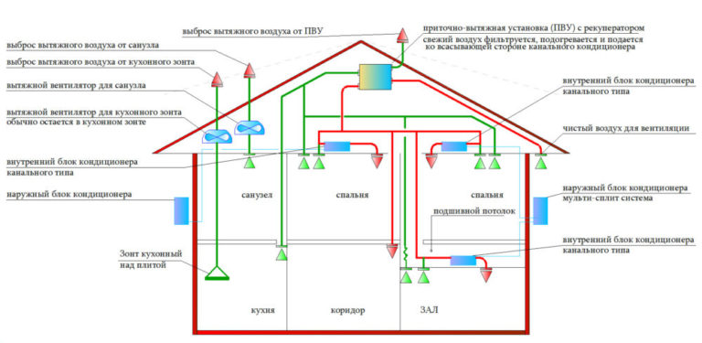 Вентилационните системи са: снабдяване - само такива, които изпомпват въздух, изпускателна система - само отработени въздушни маси и комбинирани. В нашия случай захранване и изпускане – Това е смесена вентилационна система, която включва както входяща, така и изходяща вентилация. За предпочитане е да се инсталира комбинирана система за жилищни и обществени сгради с площ над 100 м2.2 с голяма тълпа от хора.