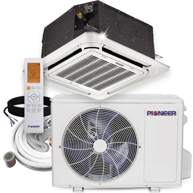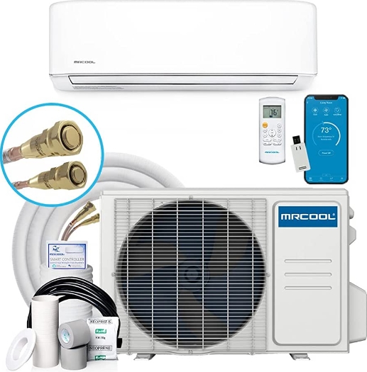 Стандартният комплект се състои от вътрешно и външно тяло, газова линия, контролен панел и технически паспорт. Някои модели се предлагат с филтър. Необходими са също кабел и монтажни елементи.