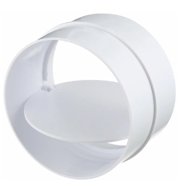 Пластмасовият конектор за кръгли въздуховоди е оборудван с еднокрилна клапа. Механизмът се задейства от въздушния поток както в естествени, така и в принудителни вентилационни системи.