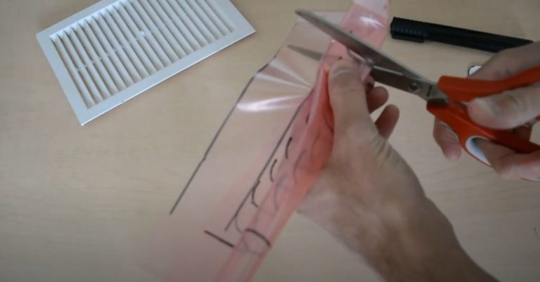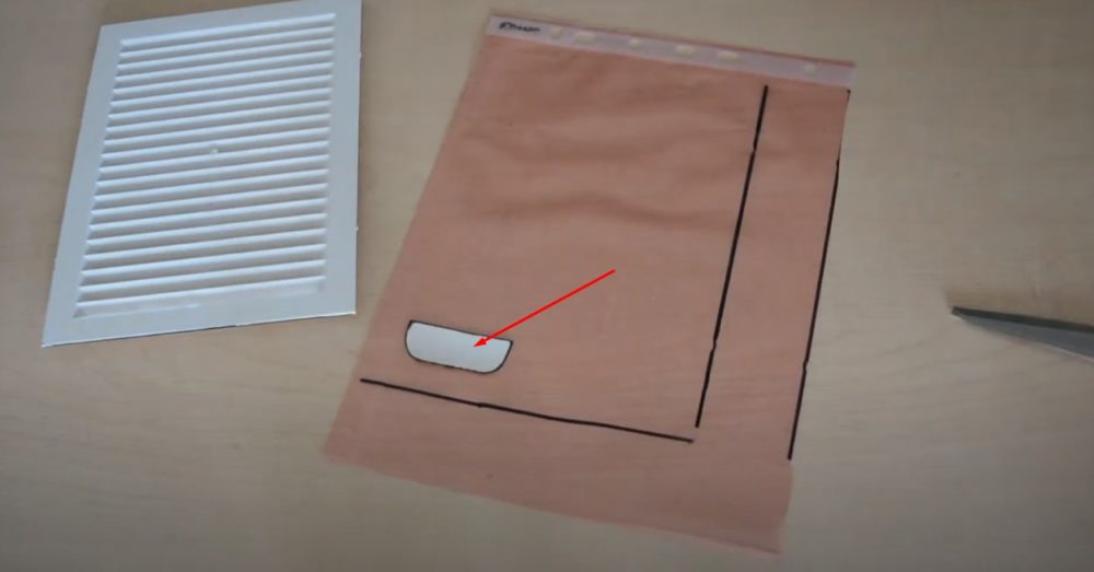 - Отстранете решетката от вентилационния отвор. Изрежете парче дебел полиетилен по размер.
