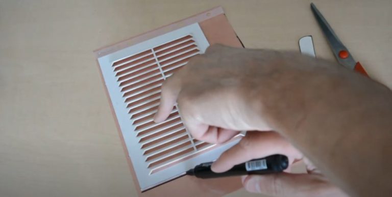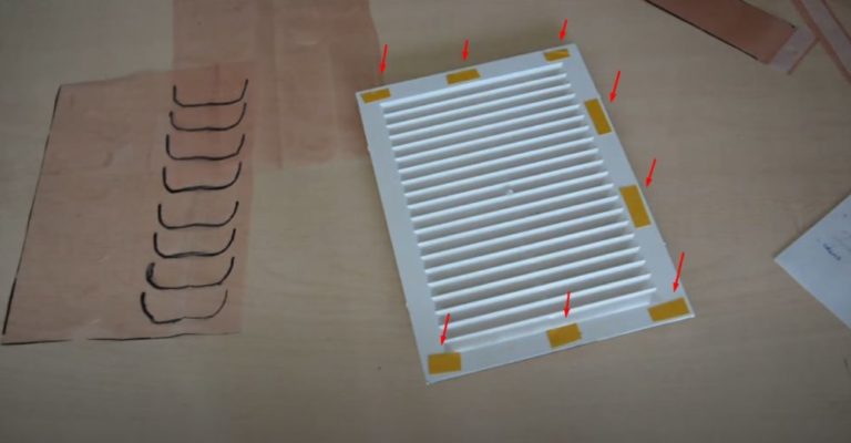 Направете ширината на шаблона да съответства на размера на ламела на вентилационната решетка. Измерете дължината с 3-4 см по-къса от половината ширина на решетката, за да сте сигурни, че във фолиото са изрязани два реда венчелистчета.