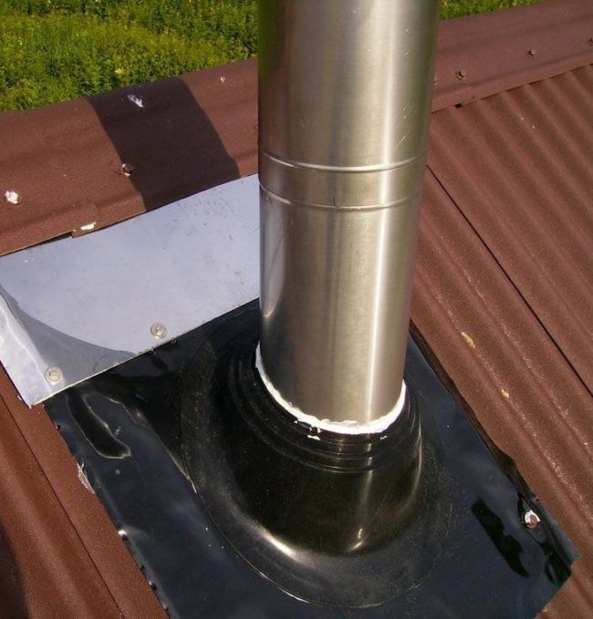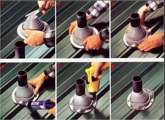 За да инсталирате вентилационен блок на покрива на частен дом, можете да инсталирате профилиран изход или проходен елемент за необходимия диаметър на тръбата.