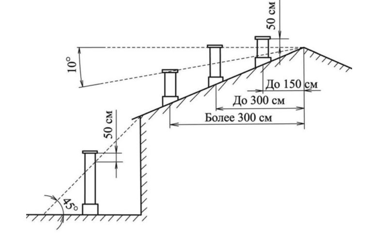 Местоположението на тръбите и височината над покрива се регулират от стандартите на SNiP.