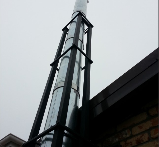 Когато на частна къща се монтира вентилационен канал на покрива с височина над 1,5-2 метра, тръбата трябва да бъде подсилена с обтегачи, скоби или метални опори. Обтегачите, изработени от поцинкован кабел или вериги, са по-лесни за монтаж и изглеждат по-привлекателни.