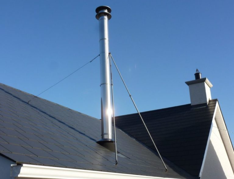 - Ниско монтираният комин, монтиран на билото, е устойчив на пориви на вятъра. Няма нужда от обтегачи или други подсилващи елементи.