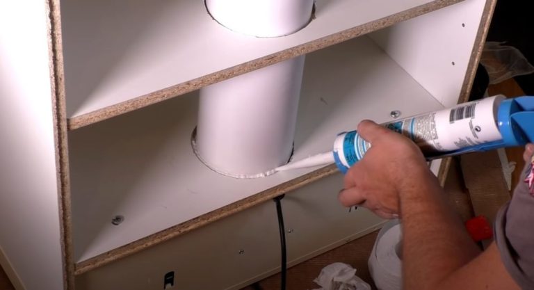 - За да предотвратите шума от абсорбатора, намалете вибрациите във въздуховодите. Запечатайте с уплътнител пролуките, където въздуховодите преминават през отворите в рафта на шкафа и тавана.