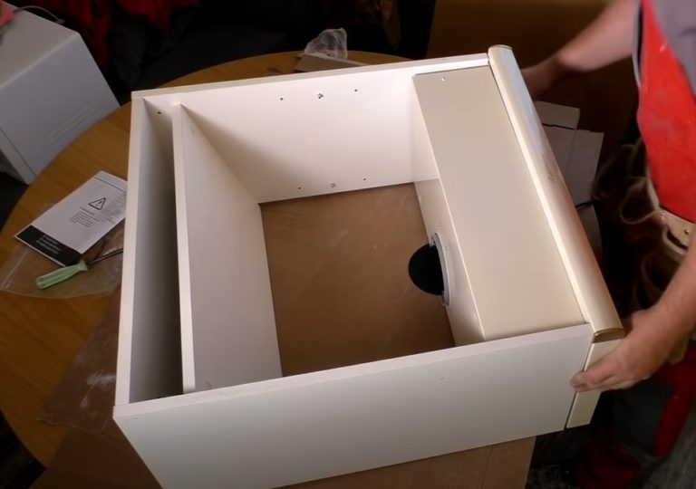 - В кухнята свалете шкафа над печката, където планирате да монтирате абсорбатора. Свалете вратата с пантите ѝ и дъното на шкафа. Тествайте аспиратора на дъното на шкафа. Уверете се, че размерите съвпадат и че няма други части, които да пречат на монтажа.