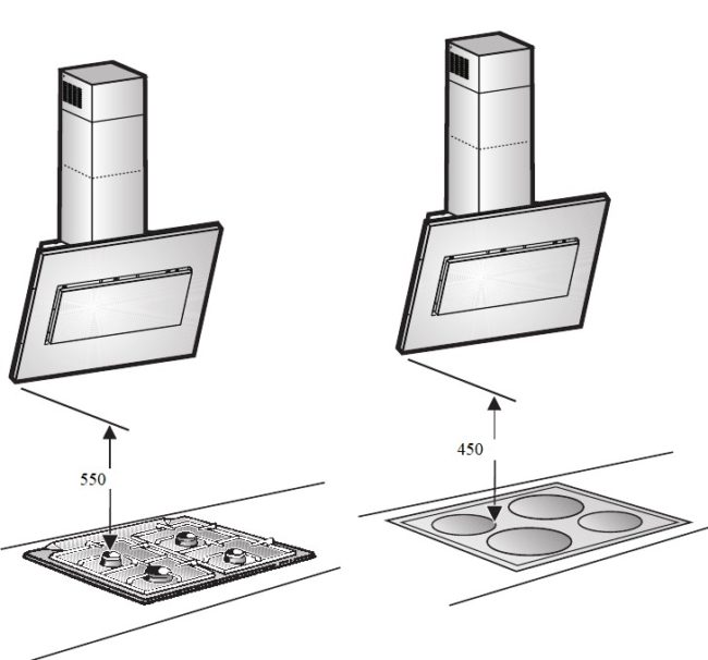Производителите произвеждат кухненско оборудване в съответствие с нормативната документация. За всеки модел инструкциите посочват височината, на която абсорбаторът трябва да се окачи над електрически и газови котлони.