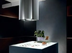 Куполообразни (коминни) абсорбатори с подходящи размери се окачват над работната зона. За да се гарантира, че големият абсорбатор не пречи на готвенето, по време на монтажа не се спазват минималните и максималните размери.