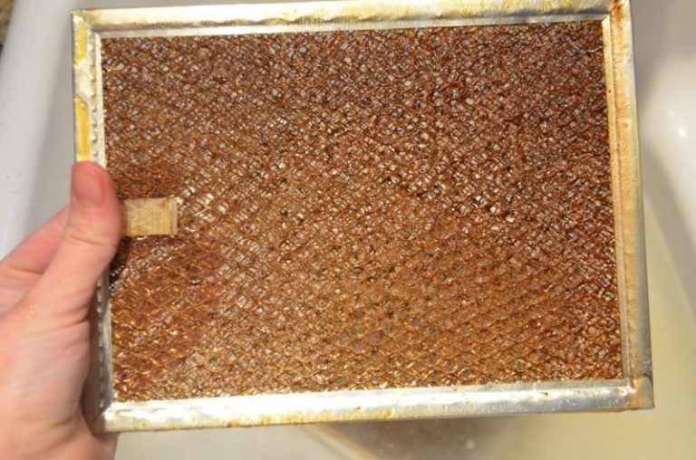 Снимка на мрежест филтър, покрит с мазнина