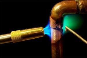 - Мед. Използва се само за запояване на метални части. Връзката се осъществява по следния начин: тръбата се вкарва в муфата на фитинга, а в останалото пространство се поставят припой и спояващ флюс. За сигурно свързване, пълнителят се разтопява с горелка. След като детайлът се охлади, той трябва да се почисти.