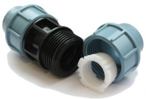 Компресионните муфи за полиетиленови тръби се произвеждат в различни размери. и форми, с резби от вътрешната или външната страна на детайла.
