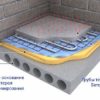 Системата за подово отопление върху бетонни плочи, независимо дали е водна или електрическа, изглежда така: