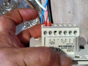 - Монтира се стенен термостат 220V (50-100 см над пода), към който се прокарват проводници от клемите. Проводници минават и от термостата към температурния сензор, който трябва да бъде позициониран точно между карбоновите ленти под фолиото (сензорът може да се закрепи с тиксо).