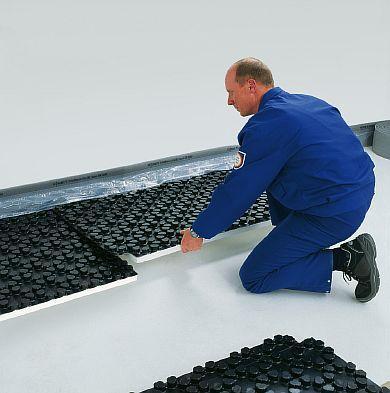 След това се полага втори слой изолация от екструдиран полистирол, въпреки че могат да се използват и други материали. Плочите трябва да са с дебелина най-малко 50 мм. Плочите са снабдени с щракващи се крепежни елементи, които опростяват монтажа и позволяват покритие без фуги.