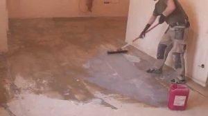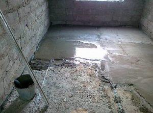 - Подготовка на бетонната основа. Повърхността се проверява за пукнатини и неравности. Ако се открият неравности, върху основата се излива тънък слой саморазливна смес.