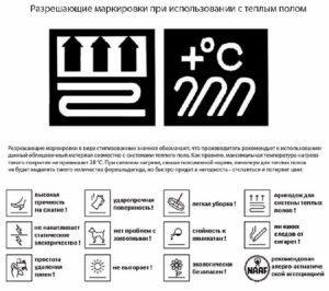 Важно! Когато купувате материал, обърнете внимание на маркировките на производителя, които показват дали може да се използва с подово отопление.