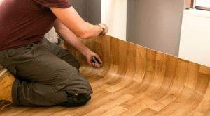 - Полагане на подови настилки. Линолеумът се разточва върху шперплат и се оставя да втвърди няколко дни. След това се монтират первазите.