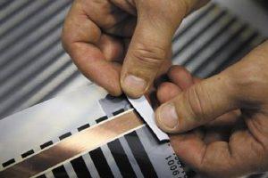 - Подготовка на фолиото. Нарежете фолиото до необходимата дължина на обозначените места с ножица. Рязането на фолиото на други места е забранено.