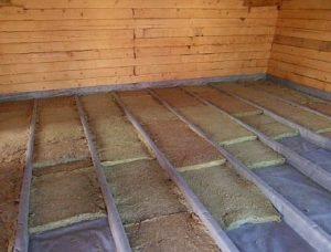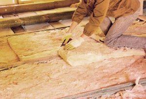 - Топлоизолация. Поставя се топлоизолационен слой, осигуряващ топлоизолация, с фолиото нагоре. Продуктът се полага един до друг и се закрепва с телбод към шперплата. Фугите между панелите се запечатват с тиксо; може да се използва фолио или строителна лента.