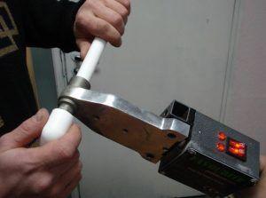 - Тръбата и фитингът се поставят върху дюзите и се задържат за необходимото време. Времето за нагряване зависи от размера на тръбата. Тези параметри са включени в инструкциите на поялника.