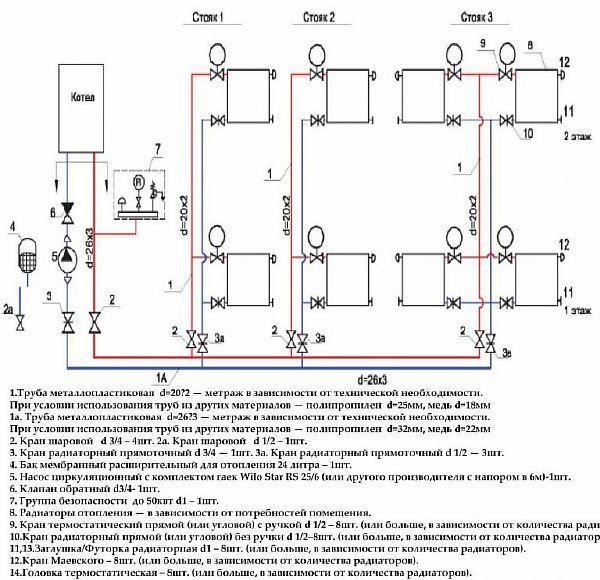 - Диаметри на тръбите. Всички отоплителни системи се инсталират с помощта на тръби с различни диаметри, осигуряващи адекватни условия за правилна циркулация на охлаждащата течност.
