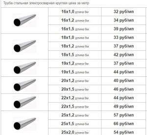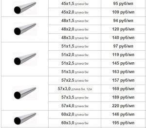 - Безшевни горещодеформирани материали на цена от 380 до 2500 рубли.
