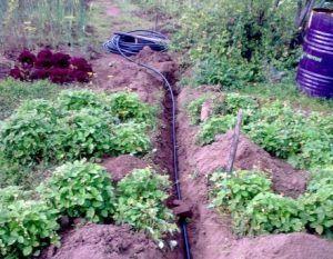 - Изкопът за летен водопровод трябва да е дълбок 40 сантиметра. Препоръчително е да се увеличи тази дълбочина под съществуващите градински лехи, в противен случай тръбната мрежа може да се повреди по време на засаждането.