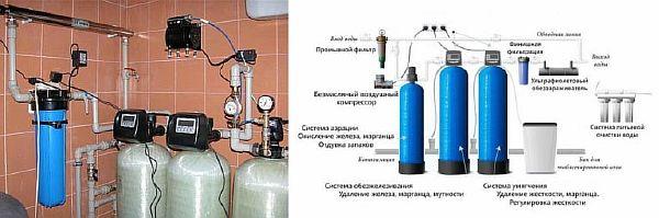 - Система за пречистване на вода, която включва отстраняване на желязо, омекотяване и биологично и химическо третиране за дезинфекция. В някои случаи се използват също озониране и ултравиолетово облъчване. Консултация относно необходимото третиране е налична в местната лаборатория на водоснабдителната компания. За целта, след пробиване и изпомпване на кладенеца, трябва да се вземат водни проби и да се предадат за анализ. Тези резултати ще дадат представа за необходимите методи за третиране и пригодността на водата за битова и промишлена употреба.