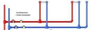 - По време на монтажа на водоснабдителната система, в разпределителната тръба се изрязват тройници, от които се свързват различни водопроводни тела и домакински уреди.