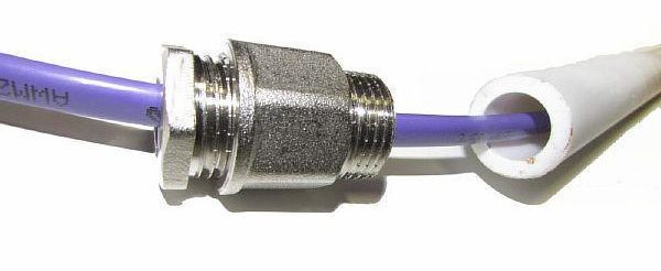След като целият проводник е във водопроводната тръба, входната точка трябва да бъде запечатана, за което служи уплътнител за проникване. Всички крепежни елементи се затягат здраво на ръка и след това се затягат с гаечен ключ. Това компресира гумената изолация вътре, като по този начин запечатва връзката.