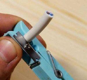 - горният защитен слой се отстранява с 4,5 см, сплетените проводници се отрязват от изолационната обвивка;